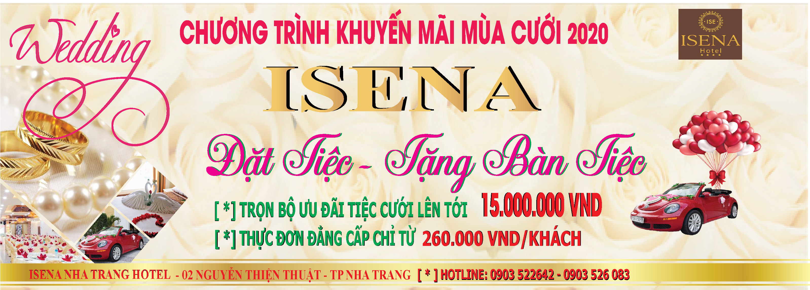 Khách sạn ISENA Nha trang xin chân thành cảm ơn Quý khách hàng đã lựa chọn và sử dụng dịch vụ của khách sạn. Thay cho lời tri ân gửi đến Quý khách hàng, khách sạn ISENA xin gửi đến Quý khách chương trình Siêu khuyến mãi năm 2020 như sau: